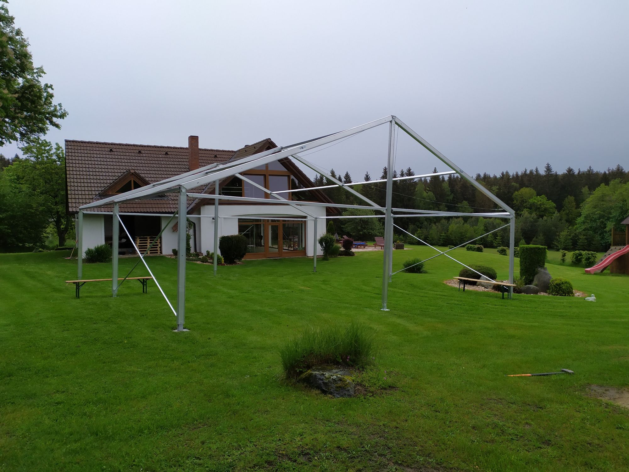 Párty stan jsme dodali i s úvodní ukázkovou montáží a klient jej rovnou využil na první akci.